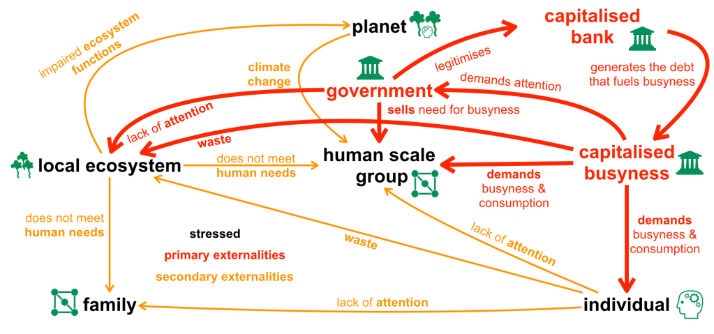And yet, we live in a world where human social affairs, across all levels of scale, are dominated by a one-dimensional metric. Some still recognise that there is biological life beyond finance, but our minds have been warped by extensive exposure to a one-dimensional metric.