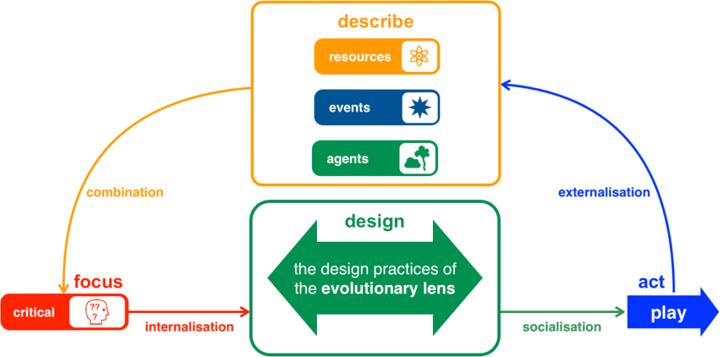 The evolutionary design approach builds on experience with the bottom-up Socialisation, Externalisation, Combination, Internalisaton (SECI) model of knowledge co-creation (Nonaka et al. 2008), and on collaboration in Open Space.