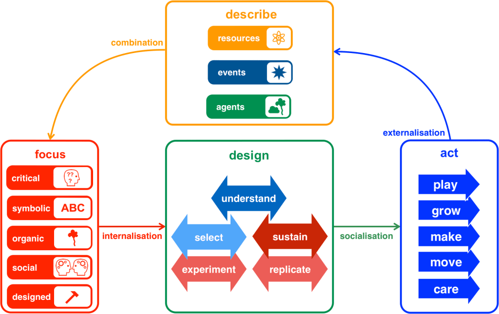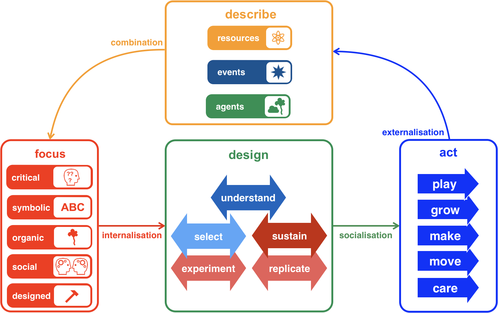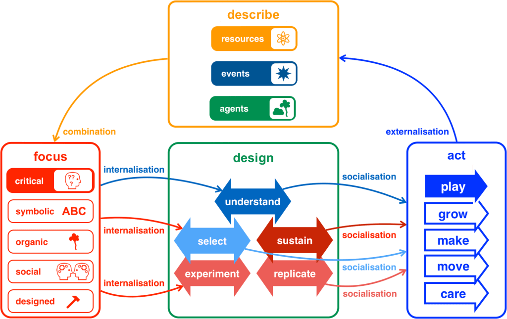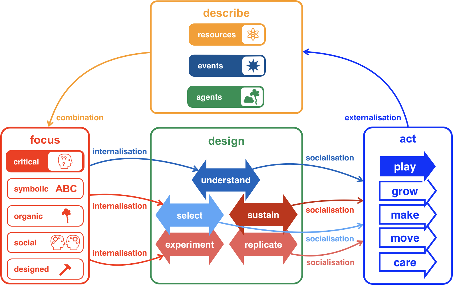 A complete picture of the ecological lens contains 22 categories: the 13 categories of the human lens, the 5 categories of the evolutionary lens, and the 4 categories of the SECI knowledge creation spiral.
